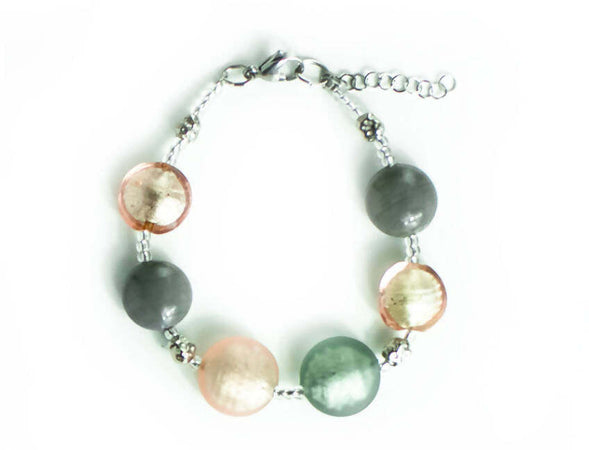 Bracciale Donna in Vetro Di Murano Rosa Bijou Fashion Artigianale Made in Italy in Ottone E Acciaio Con Perle Realizzate a Mano 19 Cm