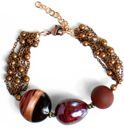 Bracciale Donna in Vetro Di Murano Rosso Bijou Fashion Artigianale Made in Italy Bracciale Multifili in Acciaio E Ottone Con Perle Realizzate a Mano 19 Cm