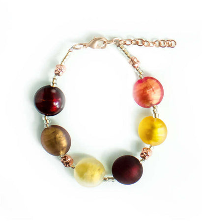 Bracciale Donna in Vetro Di Murano Rosso Bijou Fashion Artigianale Made in Italy in Ottone E Acciaio Con Perle Realizzate a Mano 19 Cm