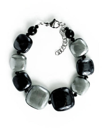 Bracciale Donna Top in Vetro Di Murano Grigio Bijou Fashion Artigianale Made in Italy Bracciale in Acciaio Con Perle Realizzate a Mano 20 Cm