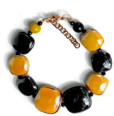 Bracciale Donna Top in Vetro Di Murano Ocra Bijou Fashion Artigianale Made in Italy Bracciale in Acciaio Con Perle Realizzate a Mano 20 Cm