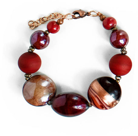 Bracciale Donna Top in Vetro Di Murano Rosso Bijou Fashion Artigianale Made in Italy Bracciale in Acciaio E Ottone Con Perle Realizzate a Mano 19 Cm