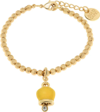 BySimon - Bracciale in Metallo maglia a sfere con campanella portafortuna impreziosita da cristalli