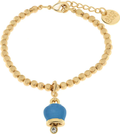 BySimon - Bracciale in Metallo maglia a sfere con campanella portafortuna pendente impreziosita da cristalli