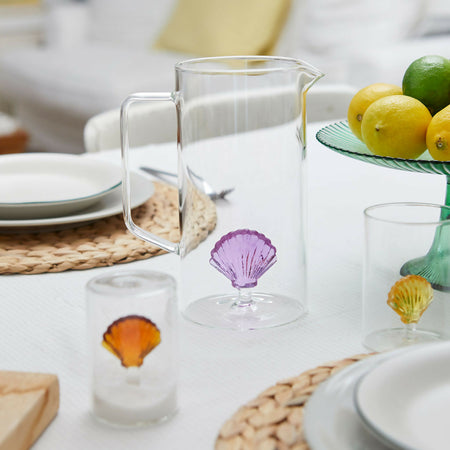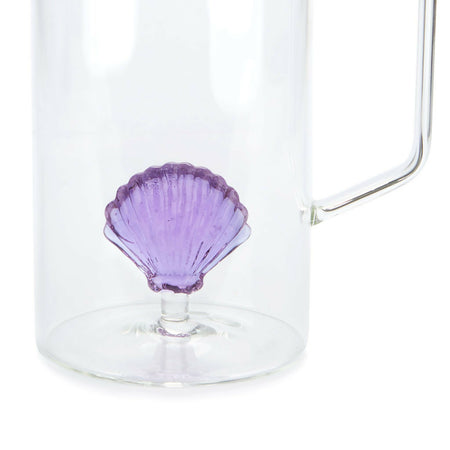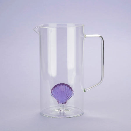 Caraffa balvi atlantis conchiglia lilla 1.3l in vetro borosilicato – brocca decorativa da tavola, fatta a mano
