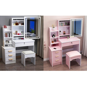 1° Più vendutoSet Tavolo Da Toeletta Per Trucco Cosmetici Con Specchio Led Morbido Sgabello Cassetti
