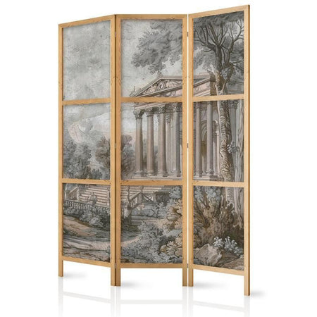 Paravento giapponese - Antique Landscape - Greek Temple on a Hill Among Lush Vegetation