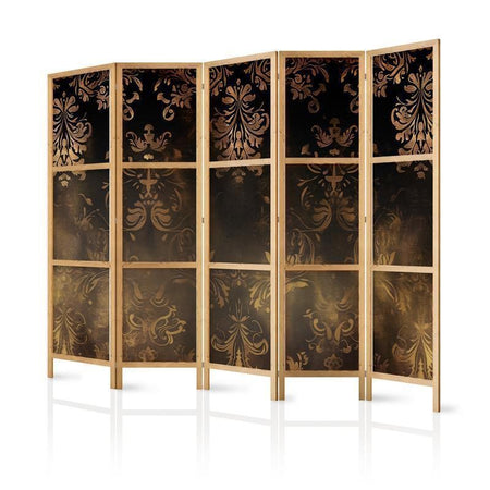 Paravento giapponese - Floral Ornaments Carved in Delicate Sepia and Brown Shades