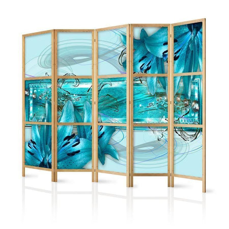 Paravento giapponese - Lilies in Pale Blue II