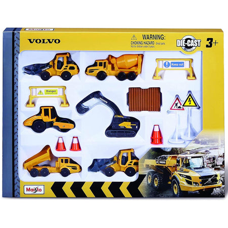 Maisto Volvo Set da 6 Pezzi Macchine da Costruzione con Accessori da Cantiere