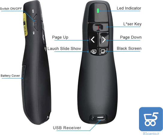 Puntatore Telecomando per Presentazioni Presenter Wireless USB 2.4 GHz per PowerPoint Slide PC Notebook – Laser Rosso Integrato