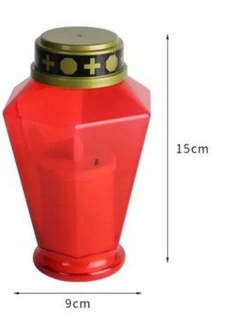 Lumino votivo cimiteriale a led effetto fiamma con batterie 2aa e interruttore