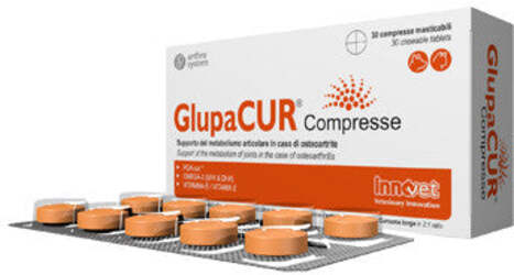 Supporto del metabolismo articolare in caso di osteoartrite. Indicato per cani e gatti di ogni età affetti da osteoartrite. Grazie all'esclusivo micro composito formato da palmitoilglucosamina ed estratto di curcuma, Glupacur supporta il metabolismo articolare di cani e gatti affetti da osteoartrite, migliorandone la qualità di vita.