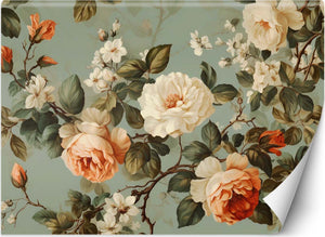 Carta Da Parati, Shabby chic uccelli fiori foglie
