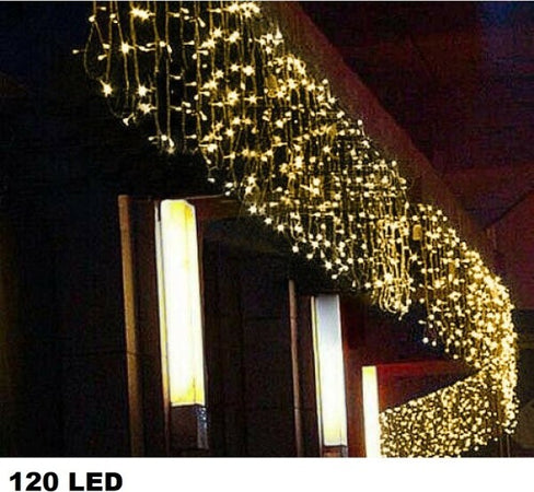 Tenda Luminosa Di Natale Led Esterno Luci 120 Led 3 Mt X 0,75 Cm Bianco Caldo