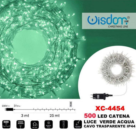 Catena Luminosa 500 Luci Led Lucciole Luce Verde Acqua Cavo Trasparente Xc-4454
