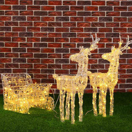 Slitta e Renne Natalizie 3D Luminose 240 LED Bianco Caldo per Esterno a batterie