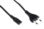 Cavi di alimentazione, Euro - C7 Questo cavo di alimentazione, noto anche come Euro 8, &egrave- utilizzato per collegare i dispositivi Home Entertainment come mangianastri/radioregistratore alla rete elettrica. Connettore 1: Euro (CEE 7/16), Spina Connettore 2: IEC C7, Presa Carico di corrente: 250V/2,5A Sezioni del nucleo: 0,75 qmm Colore cavo: Nero Colore connettori: Nero Lunghezza: 1.2 m