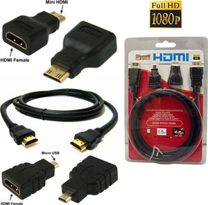 Super richiesto3 In 1 Cavo Hdmi Full Hd 1080p 1.5 M + Adattatori Mini Hdmi E Micro Hdmi Dorati