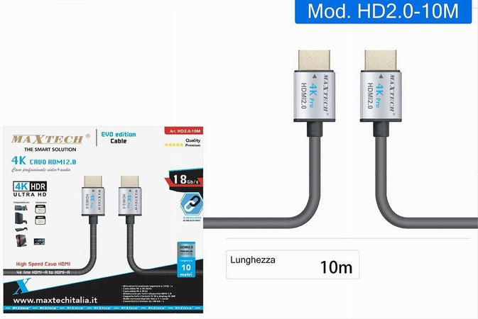 CAVO HDMI 2.0 4K DA 10 METRI HIGH SPEED TV MONITOR AUDIO VIDEO CAVETTO HD2.0-10M