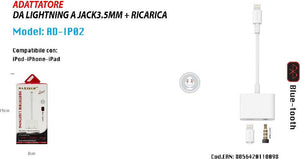 Adattatore Lightning Jack 3.5mm Ricarica Bluetooth Ipod Ipad Maxtech Ad-ip02