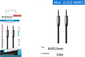 Cavo Aux 3mt Audio Jack 3,5mm Am/am Prolunga Aux Per Smartphone Maxtech Aux2-mm3.0m