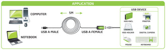 Cavo Prolunga Attivo Extender USB Hi Speed Estensore di Segnale 5m Nero