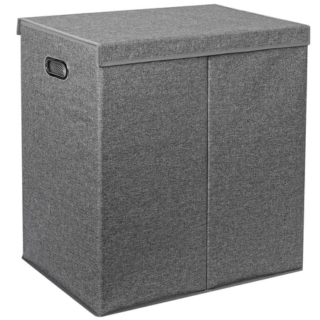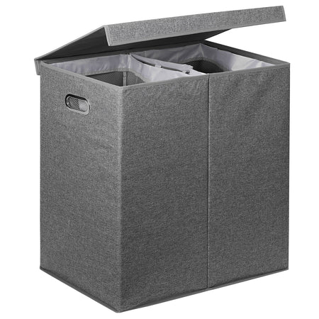 Cesto Portabiancheria con Doppio Scomparto, Coperchio e Manici in Metallo 64x36x65 cm