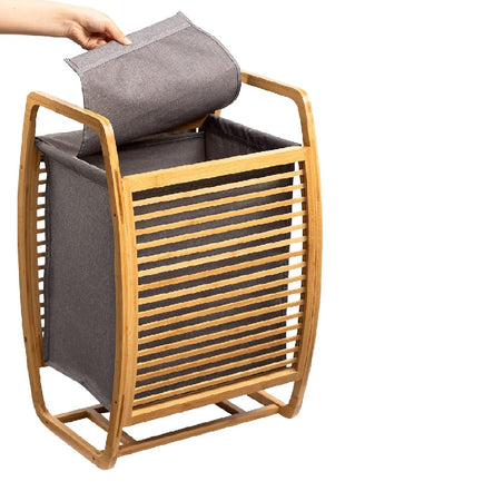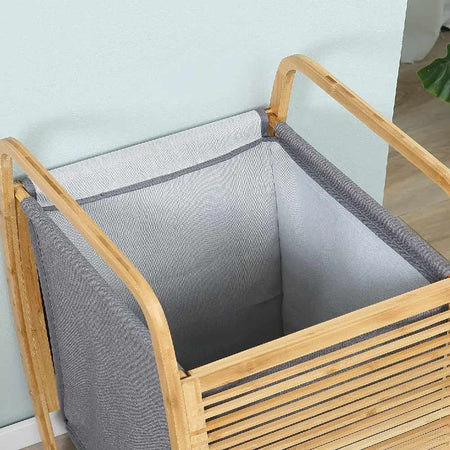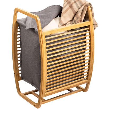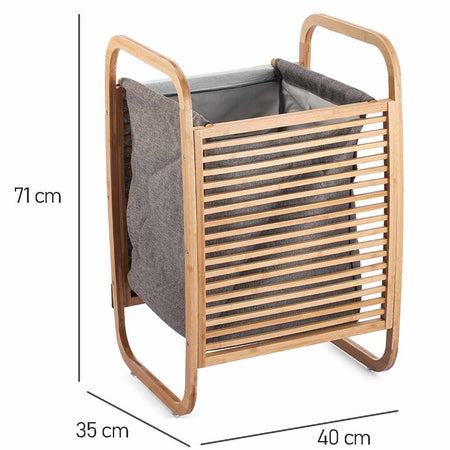 Porta Biancheria in Legno Bambù Sacco Tessuto Estraibile 40x35 H 61cm Grigio