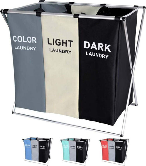 Cesto Biancheria 3 Scomparti Portabiancheria Pieghevole In Metallo E Tessuto