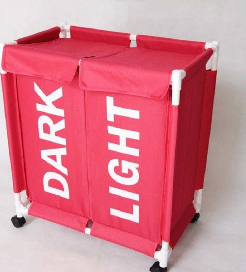 Cesto Contenitore Porta Biancheria Bucato 2 Scomparti Rotelle Panni Bagno
