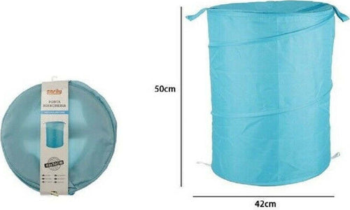 Cesto Contenitore Portabiancheria Bucato Giochi Pieghevole 42x50cm Celeste 79854