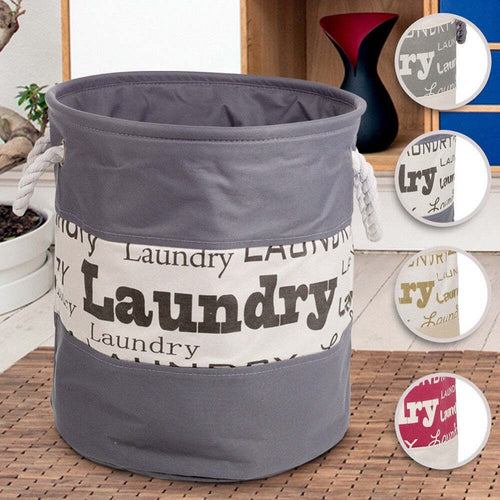 Cesto Porta Biancheria Vintage In Tessuto Con Scritta Portabiancheria 4 Colori