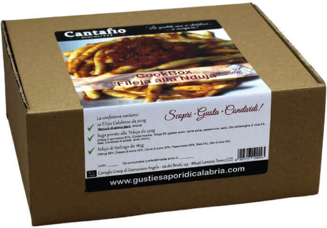 Box Pasta Alla Nduja piccante tipica Calabrese COOK BOX "Fileja alla Nduja" CANTAFIO GOURMET® con nduja e pasta tipica Fileja
