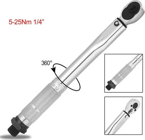 Chiave Dinamometrica Cricchetto 1/4'' 5-25 Nm Serraggio Reversibile 270mm