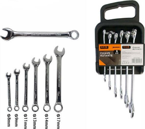 Confezione 6 Pezzi Chiave Inglese Combinata Cricchetto Anello Varie Misure 07458