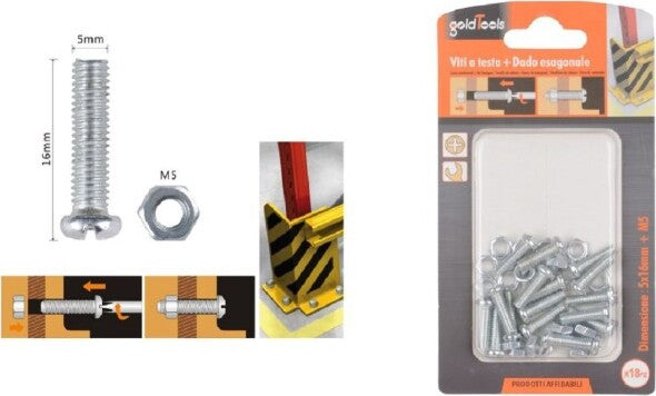 Set 18 Pz Viti Vite Testa A Croce Tonda 5x16 Mm Con Dadi Dado Esagonale M5 90967