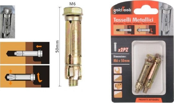 Set 2 Pz Tasselli Metallici Tassello Bulloni M6 X 50mm Accessori Minuteria 91040