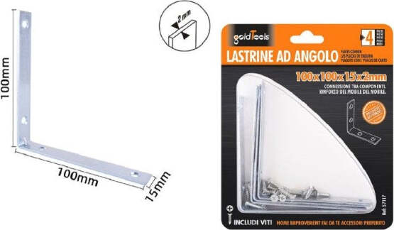 Set 4 Pz Lastrine Ad Angolo Lastrina Angolare 100x100x15x2 Mm Viti Mobili 57117
