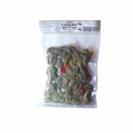Olive Verdi Condite Calabresi Olive Fresche "carolea" Italiane Schiacciate E Denocciolate Made In Italy