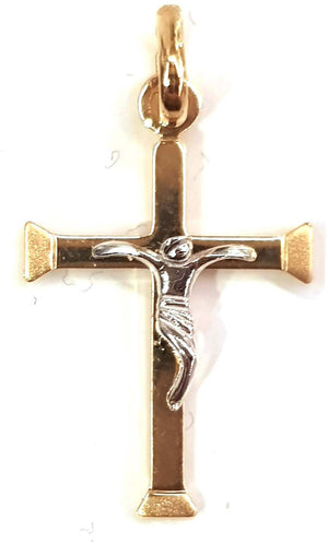 Croce in oro Bianco e Giallo 750/1000 Pendente Religioso con Cristo in Oro Bianco Applicato