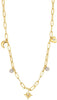 Collana Chant In Acciaio Con Rifinitura Oro E Ciondoli Luna, Rosa Dei Venti E Cuore.