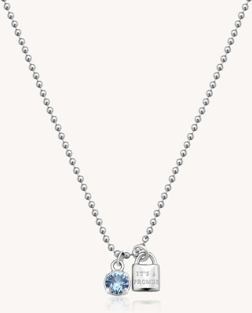 Collana girocollo in acciaio 304, con cubic zirconia colore spinel e pendente a forma di lucchetto.