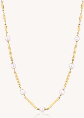 Collana girocollo in acciaio 316L, finitura color oro e perle.