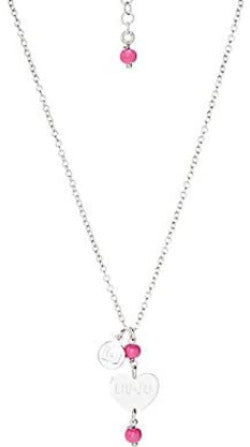 Collana da donna Liu Jo in argento con ciondolo centrale con cuoricino logato e perline rosa.