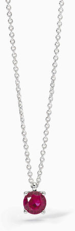 Collana da donna di Mabina della linea Shiny. Girocollo in argento 925 rodiato con catena forzatina 1.5 mm e rubino sintetico 5.5 mm. La lunghezza é regolabile da 39 a 43 cm.