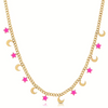Collana con charm stelle e charm lune in acciaio lucido con trattamento pdv oro giallo e smalto colorato. Lunghezza: 38+5cm.