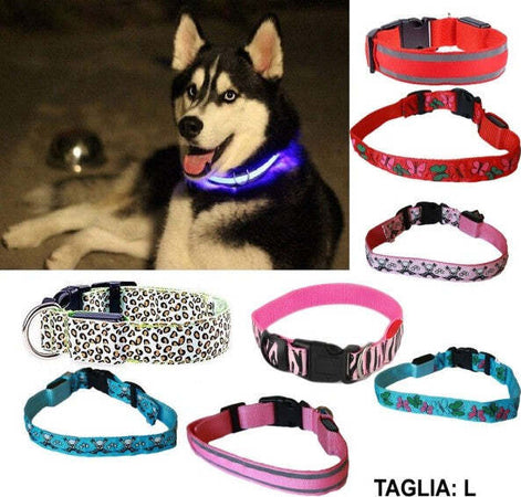 Collare Per Cane Cani A Led Luminoso Sicurezza Led Notturno Clip Fantasia Tg.l