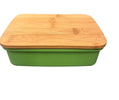 • Contenitore per alimenti rettangolare in plastica con tappo ermetico in bambu'.