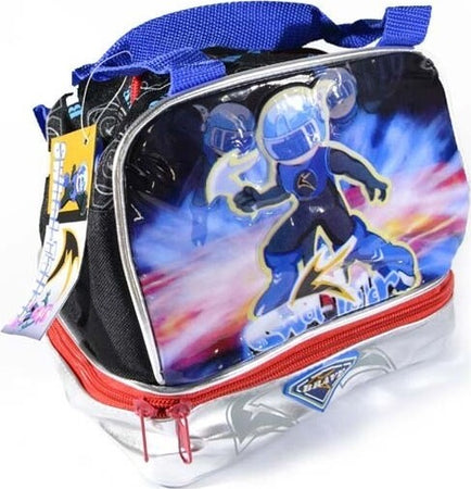 Cestino portapranzo o lunch box, SWALL TAYLOR BRAVE' in tela, con doppia cerniera, manico da passeggio e tracolla regolabile, scomparto sul fondo. Interno salvafreschezza. Raffigurazione in PVC e in rilievo.